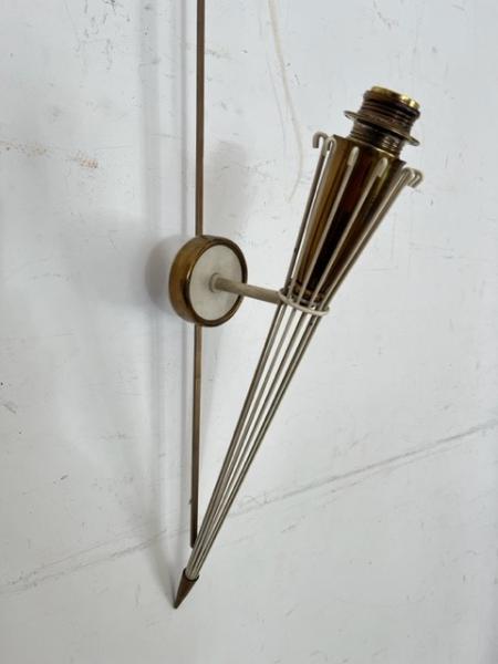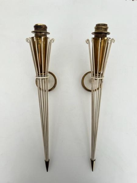 PAIRE DES APPLIQUES. ANNÉES 50. LAITON ET FER. 8X14X37 CMS